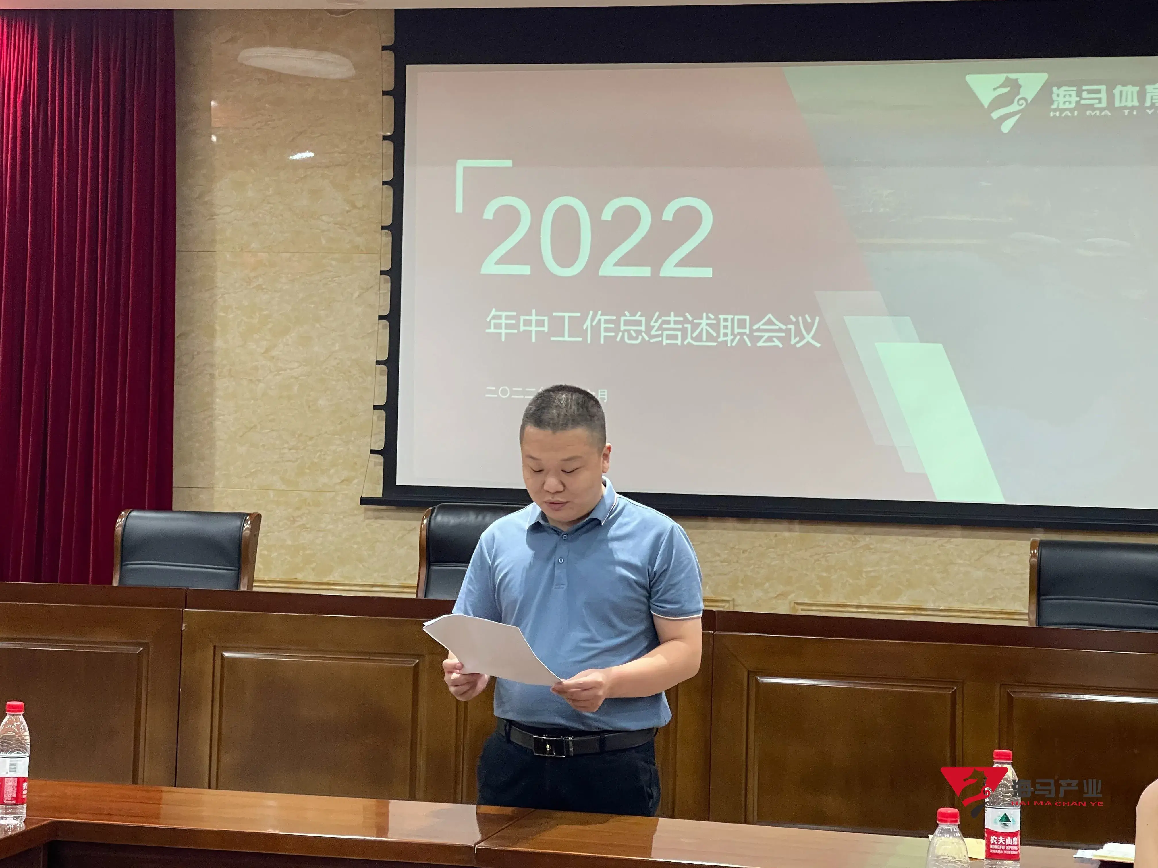 2022年6月29日下午,耀世娱乐文化产业集团在山东省体育中心二楼会议室召开年中工作总结述职会议,会议对上半年工作成果进行了总结汇报,并就下半年重点工作进行部署。总经理王海民出席了本次会议。会议由综合管理部负责人王永健主持。